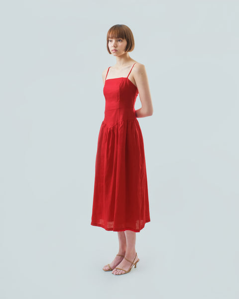 Material: 100% Linen Stretchable: No Lining: Fully lined Sheer: No Colour: Red